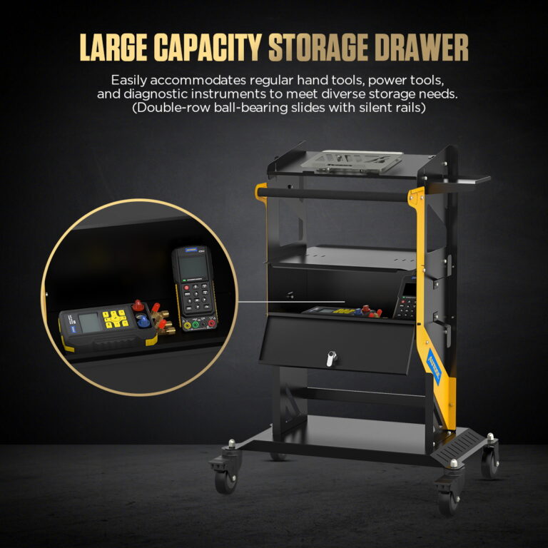 MOBILITÉ FLUIDE ET STABILITÉLe travail en atelier nécessite des déplacements fréquents du matériel. L'AUTOOL T23 est conçue pour être manœuvrée avec légèreté et précision, même à pleine charge. Roues Heavy Duty silencieuses : Roues pivotantes de 4 pouces sur roulements à billes qui se déplacent sans bruit, préservant le sol de l'atelier. Verrouillage de sécurité : Deux roues sont équipées de freins robustes pour immobiliser la servante dans la position souhaitée. Poignée ergonomique : La poignée profilée avec revêtement antidérapant facilite la poussée et la traction. |