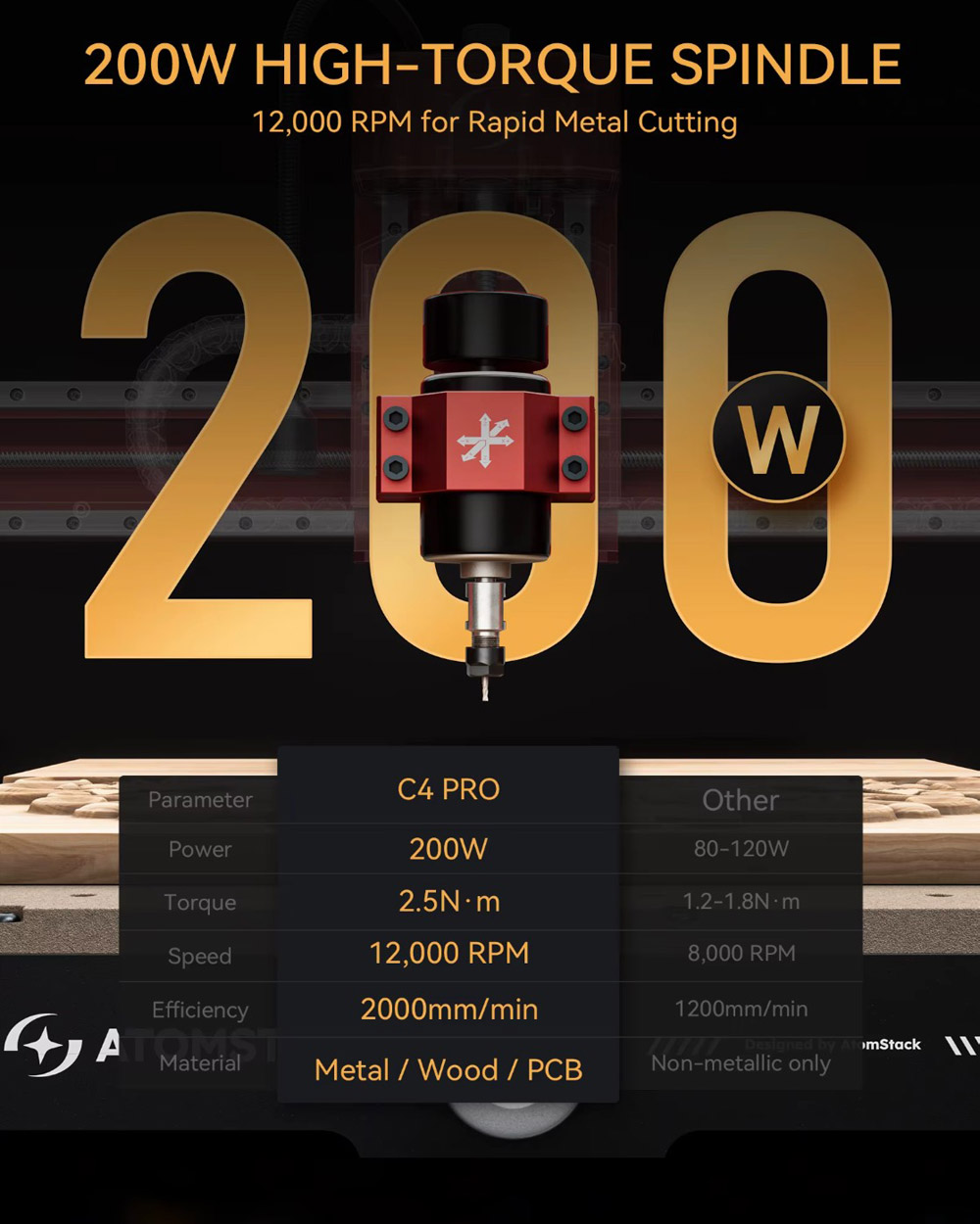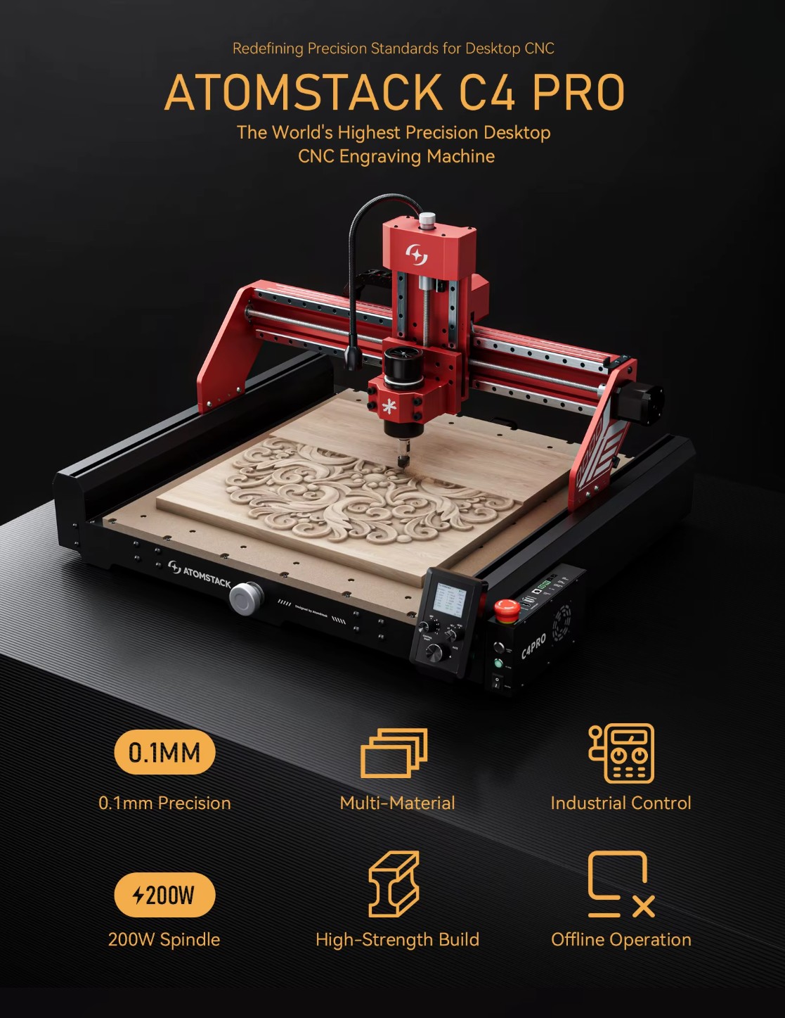 La fraiseuse AtomStack C4 Pro a été conçue pour offrir une grande facilité d’utilisation et une précision sans compromis.