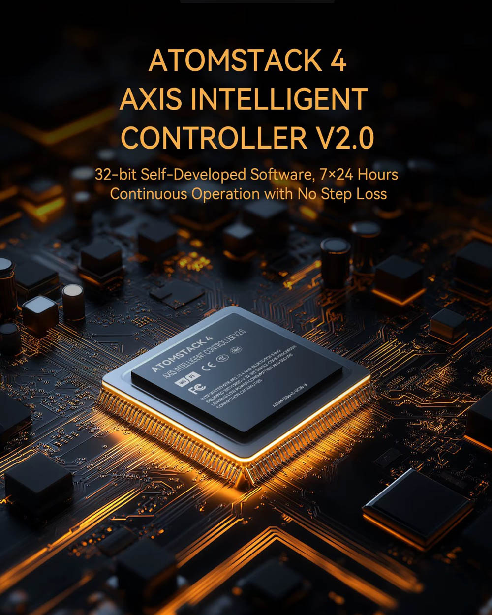 Contrôleur : ATOMSTACK 4AXIS INTELLIGENT CONTROLLER V1.0 (version V2.0) doté d’une série de fonctions professionnelles auparavant réservées aux machines industrielles. Cela améliore considérablement le confort et l’efficacité du travail.