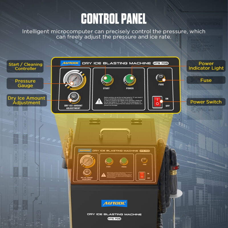 SYSTÈME DE CONTRÔLE INTELLIGENTLe modèle HTS705 est équipé d'un système de contrôle par micro-ordinateur des paramètres de travail, permettant un dosage précis de l'agent de nettoyage. Spécifications du panneau :
