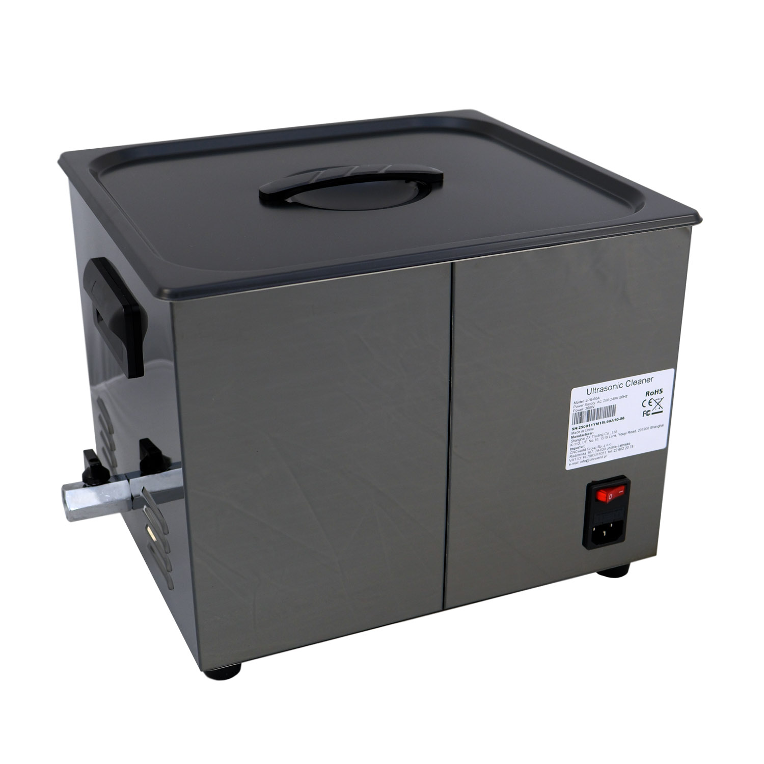 Le nettoyeur à ultrasons GX60A est équipé d’un réservoir en acier inoxydable SUS304 de haute qualité avec une capacité de 15 litres, une puissance ultrasonore de 360 W et une puissance de chauffage de 400 W.